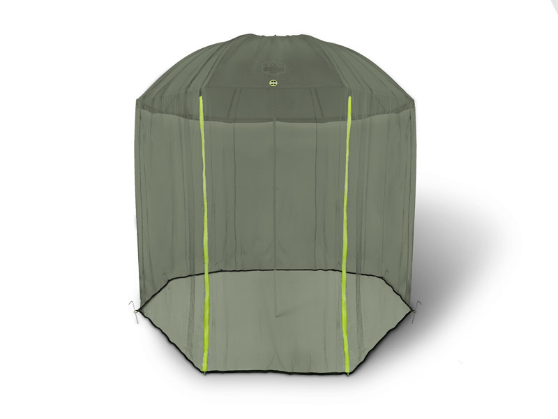 Rendkívül hatékony védelem a tolakodó rovarokkal ellepett partokon! Speciális kialakítású szúnyogháló, mely univerzális méreteinek köszönhetően a horgászernyők túlnyomó többségére rögzíthető. A rögzítőrendszer egy központi lyukból áll az esernyő hegyéhez és a csomag részét képező 8 rögzítőszögből. A bejáratot két fényvisszaverő színű cipzárral láttuk el, hogy éjszaka és kedvezőtlen fényviszonyok között is könnyebben tájékozódjunk. A finom háló nem enged be semmilyen nem kívánt társat az ernyő alá.
