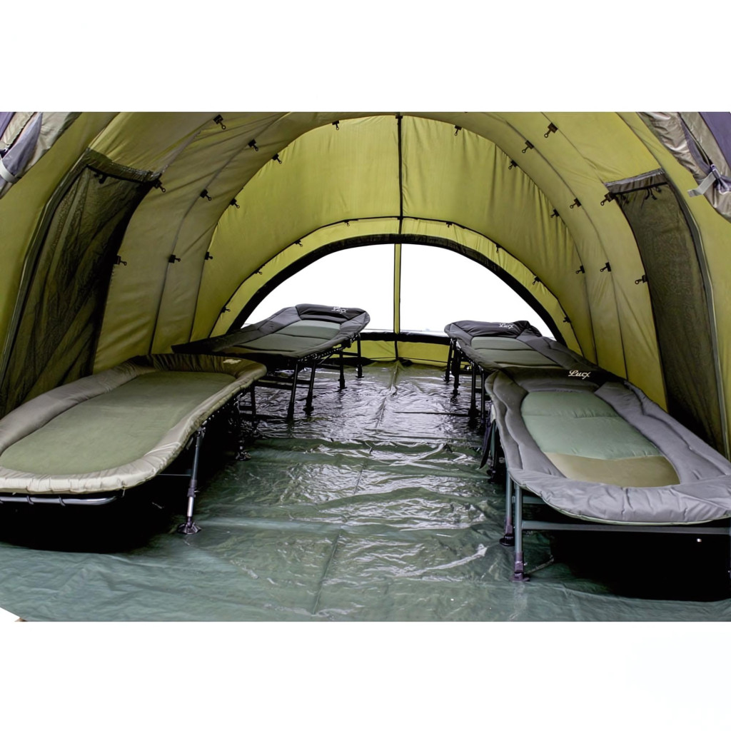 Hatalmas és kiváló minőségű 4-6 személyes horgászsátor belső kabinnal és két oldalsó ajtóval.